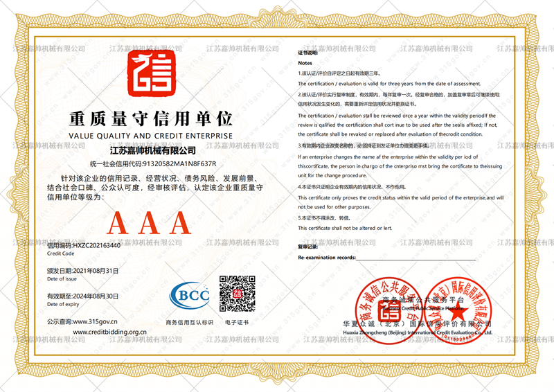 “以質量求生存,以信譽求發(fā)展”是我公司的一貫宗旨。以用戶為先,竭誠為機械行業基礎建設者服務,使我們的職責和愿望。提供優(yōu)良的質量,完善的售后服務,滿足客戶的需求是我們追求的目標。公司堅持以市場為導向,以服務搶先機,電商和實體相結合的企業精神,在未來,努力將嘉帥機械打造成機械制造的知名企業。